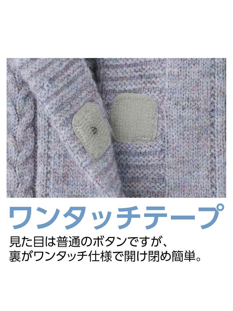 【前開き】【名前記入欄付】あったか毛混ワンタッチテープニットカーディガン/婦人用/レディース/高齢者/シニア/介護/施設/入居/秋冬/後ろ長め/ギフト/プレゼント/お出かけ 【CF】(L.グレー)