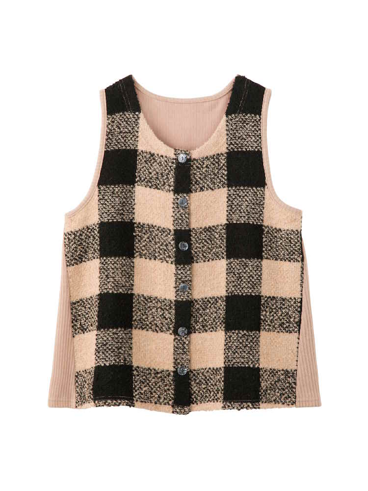 【前開き】【ゆったり】斜め釦ホールあったかベスト/婦人/レディース/高齢者/シニア/ゆったりアームホール/介護/お出かけ/施設/ギフト/プレゼント 【CF】(ブラック)