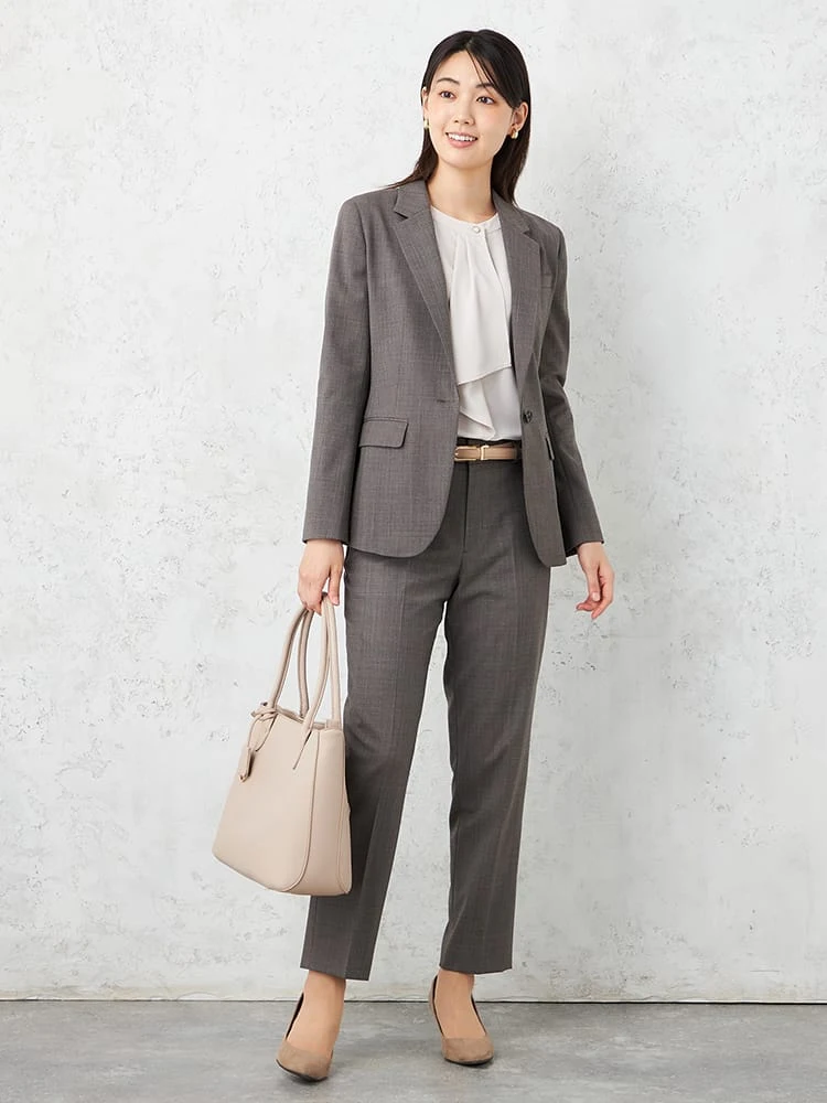足首もさりげなく覗き、女性らしい抜け感が加わっています。