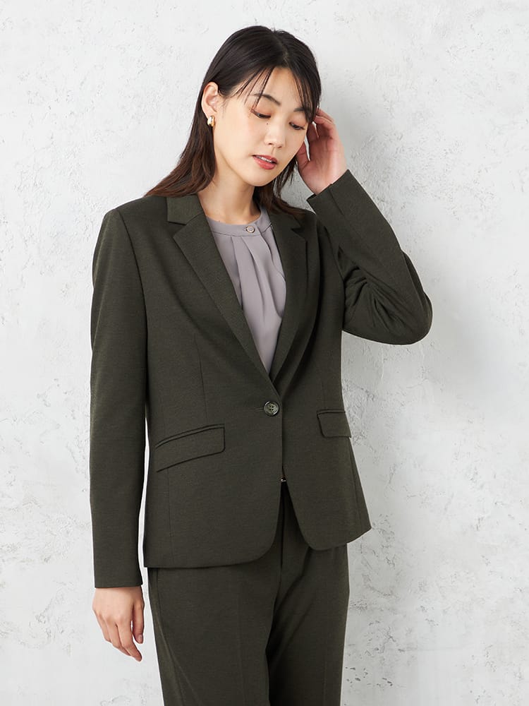 • カーキー 【SOFFICE】2WAYニットカルゼテーラー1ボタンジャケット 無地 ストレッチ 秋冬 【レディース】 | はるやま公式通販