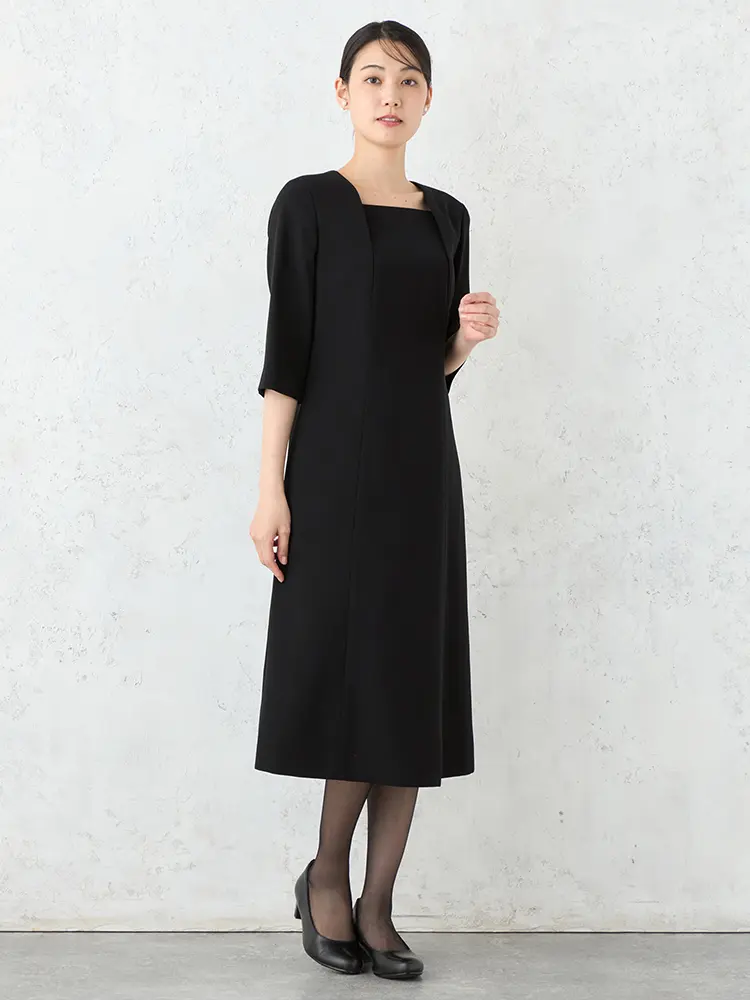 【フォーマル2点セット】スタンドカラージャケット/前開きワンピースアンサンブルウォッシャブルストレッチブラック通年SOFFICE【レディース】