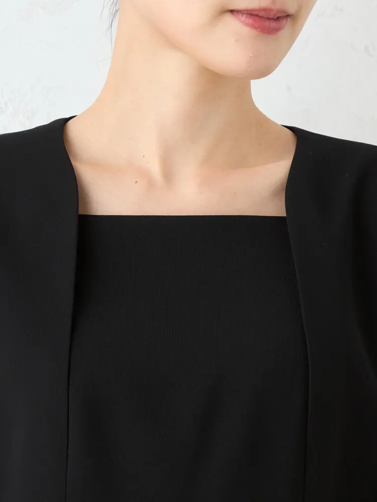 【ウォッシャブル】フォーマルジャケット/前開きレース衿ワンピースアンサンブルストレッチ黒無地STOVEL&MASONWHITE通年【レディース】