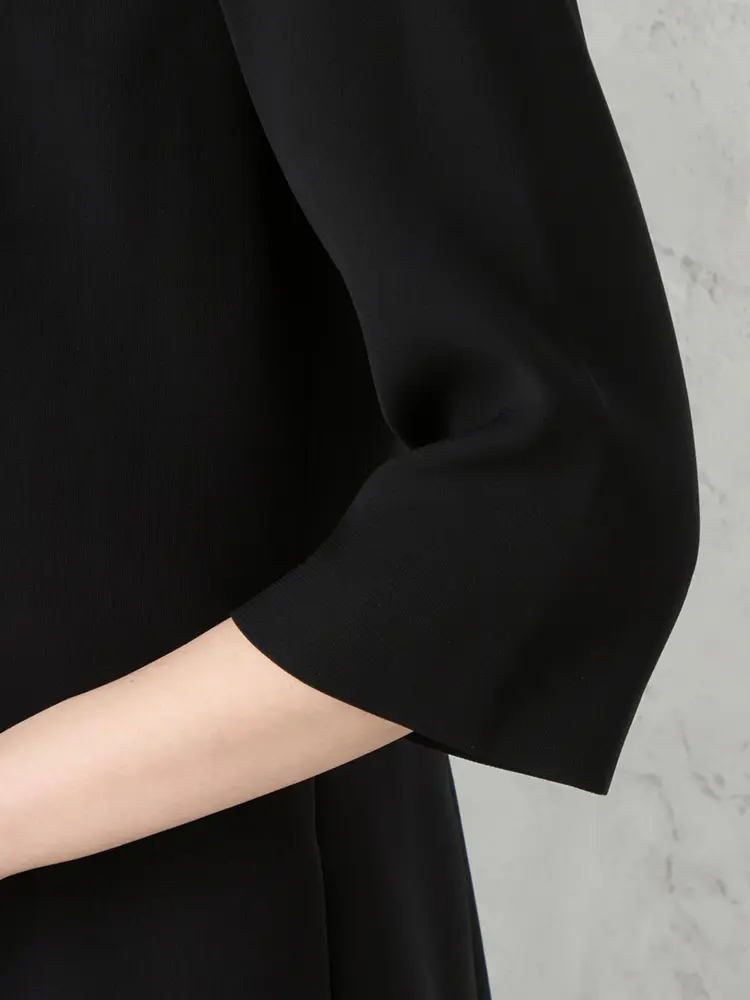 丸みのある優しい印象のテーラードジャケットと、Aラインワンピースの洗練されたセットです。