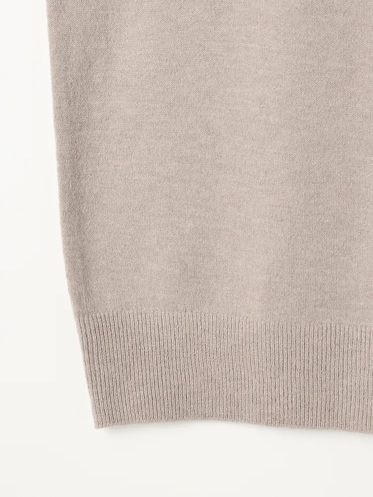 チクチクしにくい柔らかで滑らかなカシミアタッチニットを使用した着心地の良い一枚。