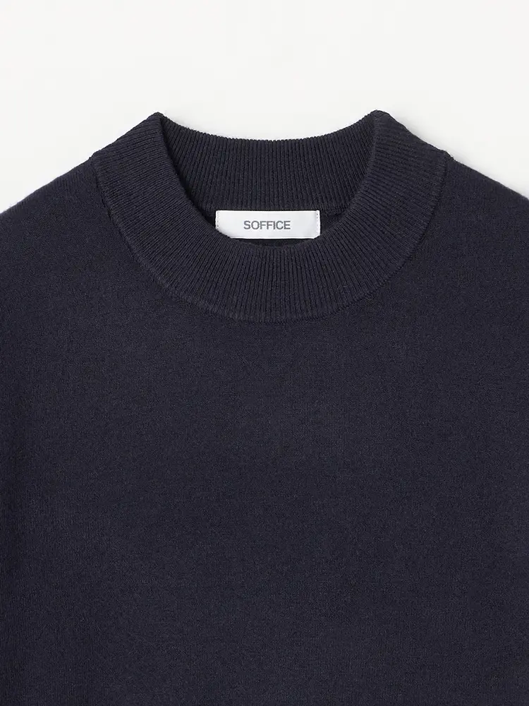 【SOFFICE】 カシミアタッチニット モックネック ニット・カットソー 長袖 ソフィーチェ 秋冬(ネイビー)