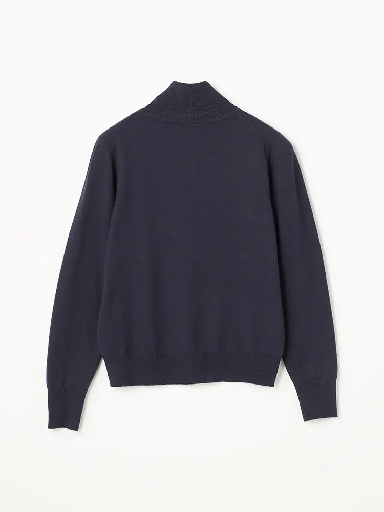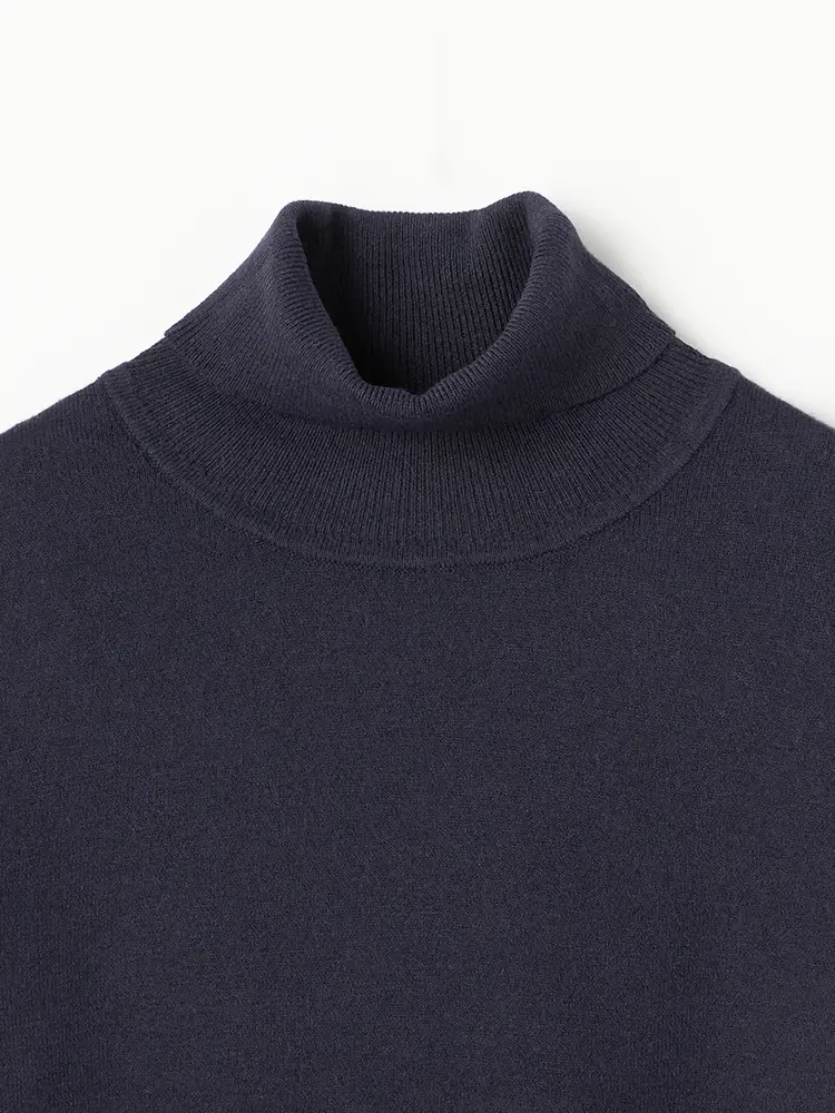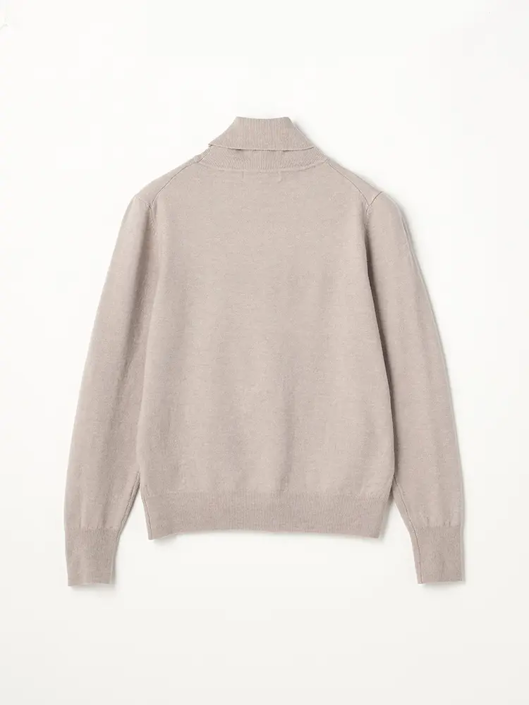 柔らかなトーンで明るい印象のタートルネックのニット。