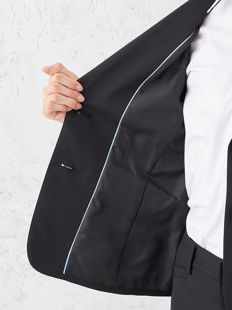 切り込みが1本のセンターベントデザインです。細身でスッキリとしたシルエットが特徴で、快適な着心地を提供します