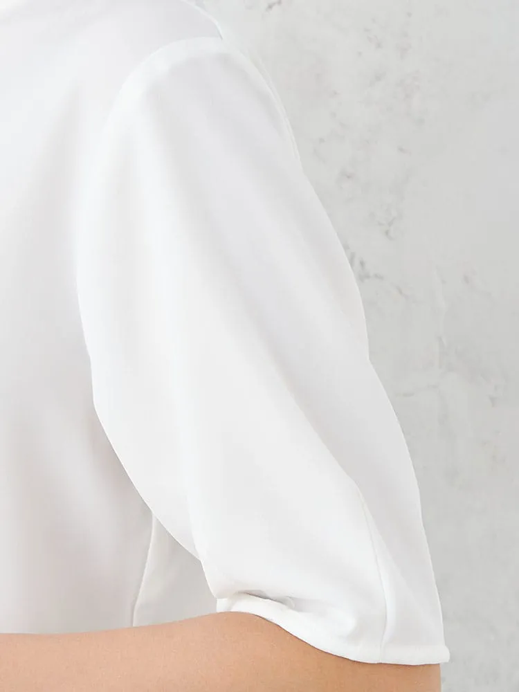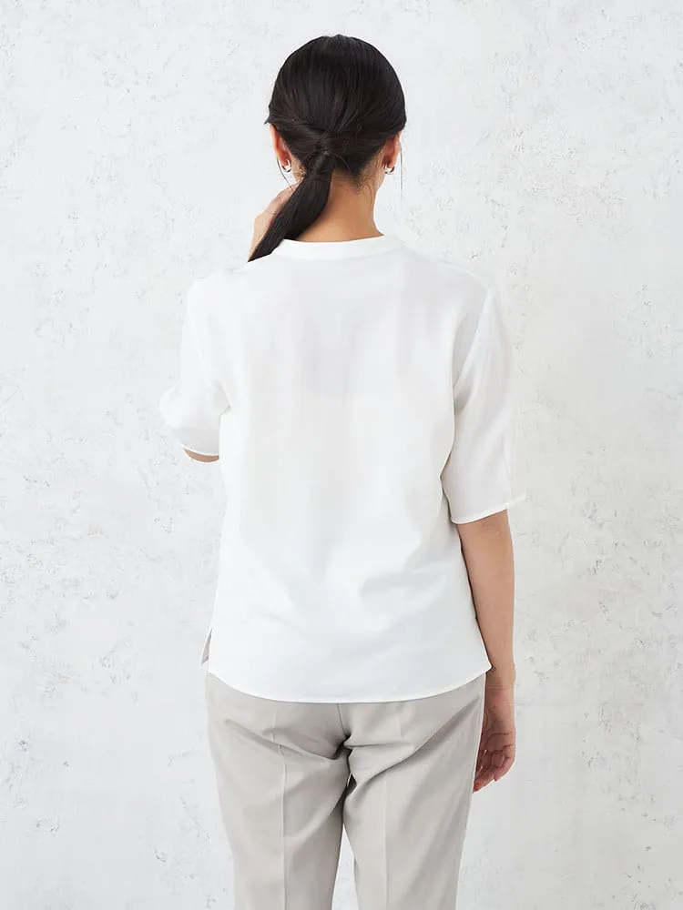 【ウォッシャブル】半袖ハートネックブラウス防臭抗菌透けにくい無地SOFFICE春夏【レディース】
