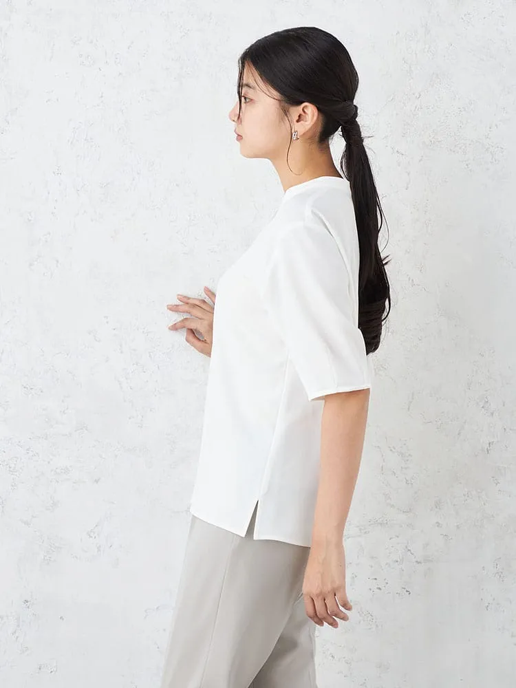 【UVカット】バンドカラ-ブラウス 5分袖 透けにくい ウォッシャブル SOFFICE 春夏【レディース】