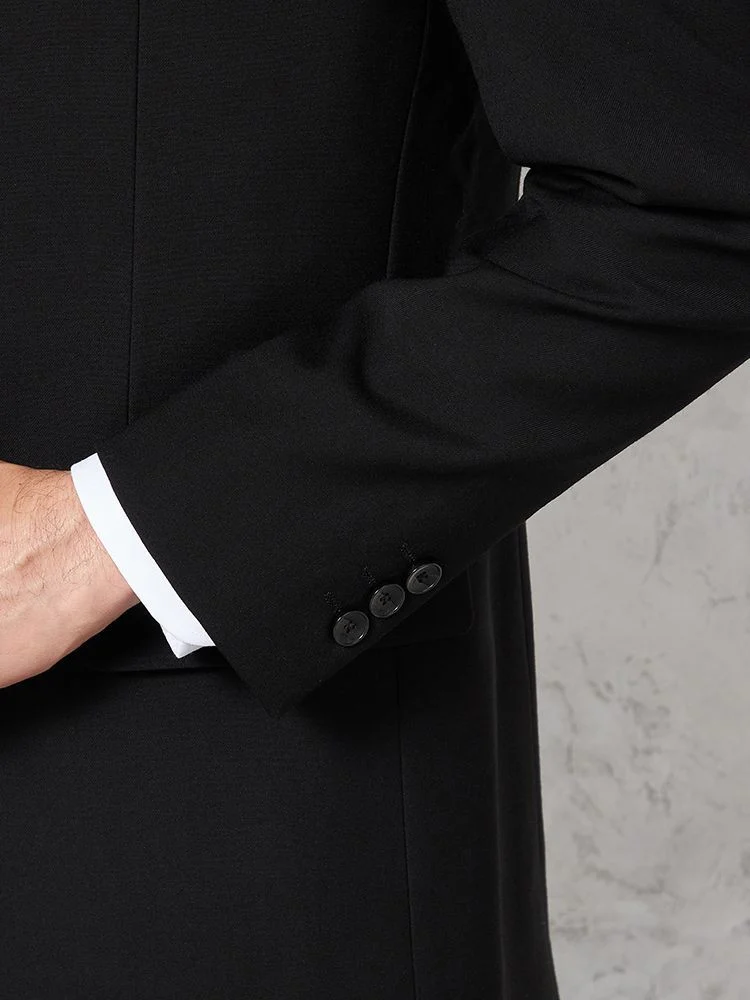 [礼服]【ウエストアジャスター仕様】フォーマル 2つボタン ウール混 黒無地 カンサイ・ヤマモト 通年【定番】