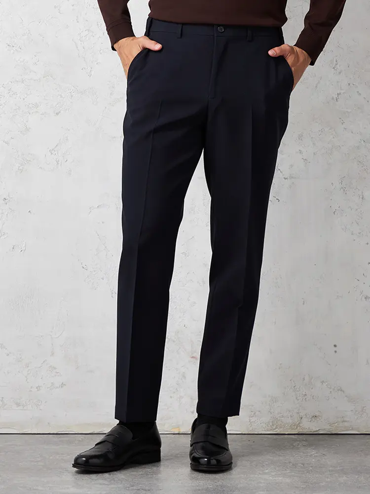 【セットアップ対応】パンツ紺無地ウォッシャブルノータック通年