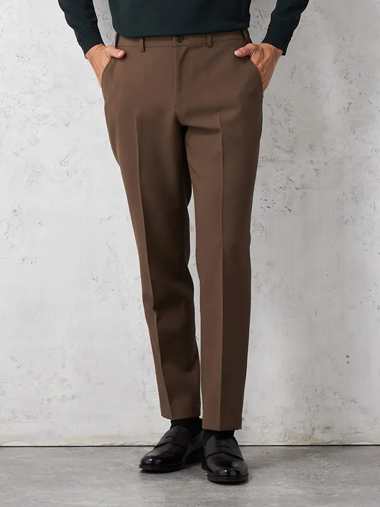 脚のラインにほど良くそうノータックならではの細身のシルエット、あわせるシャツやジャケットを選ばない定番のカラー展開です。