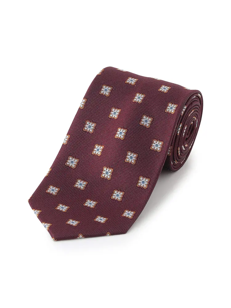 【シルク100%】ネクタイ レギュラー メランジ調 小紋 リッケンバッカー 秋冬(ワイン)