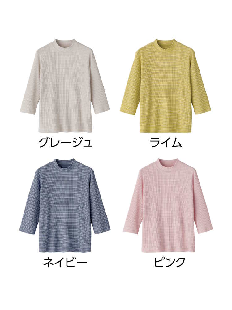 7分袖かすりジャカードTシャツ/婦人用/レディース/シニア/高齢者/おしゃれ 【CF】