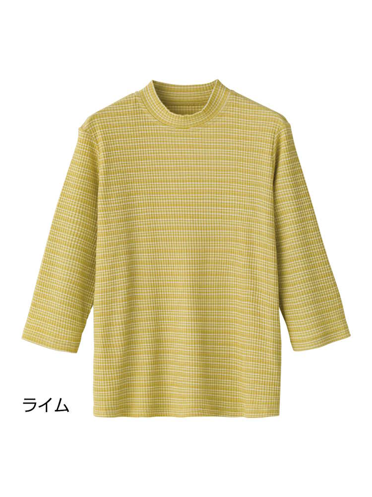 【吸水速乾】【身幅ゆったり】7分袖綿混ボーダーTシャツ/婦人用/レディース/シニア/高齢者/ギフト/プレゼント 【CF】(G.イエロー)