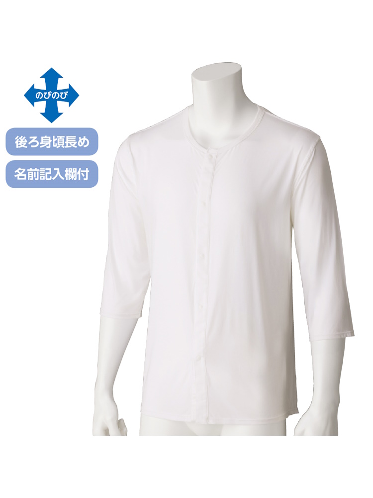 スルッと着られる8分袖ホックインナー/紳士用/メンズ/前開き/下着/肌着/年間素材/着脱しやすい 【CF】(ホワイト)