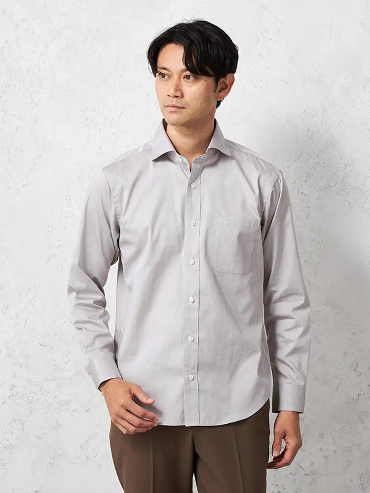 【形態安定】長袖ワイシャツ セミワイド 別布 L.グレー 織柄無地 ビバリーヒルズポロクラブ 通年