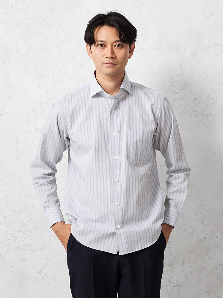 【形態安定】長袖 ワイシャツ セミワイドカラー シャドウストライプ柄【スリム】【フレッシャーズ対応】nero 通年