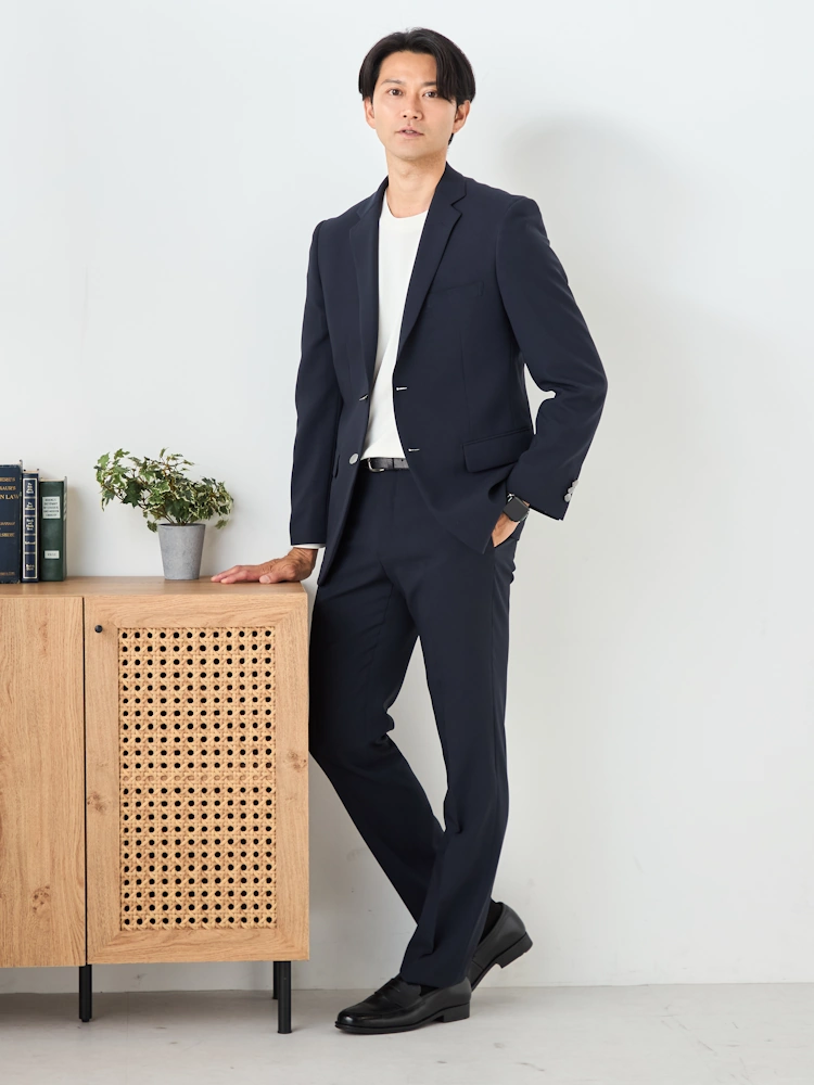 セットアップ対応のジャケットと組み合わせてスーツスタイルでの着用もおすすめ