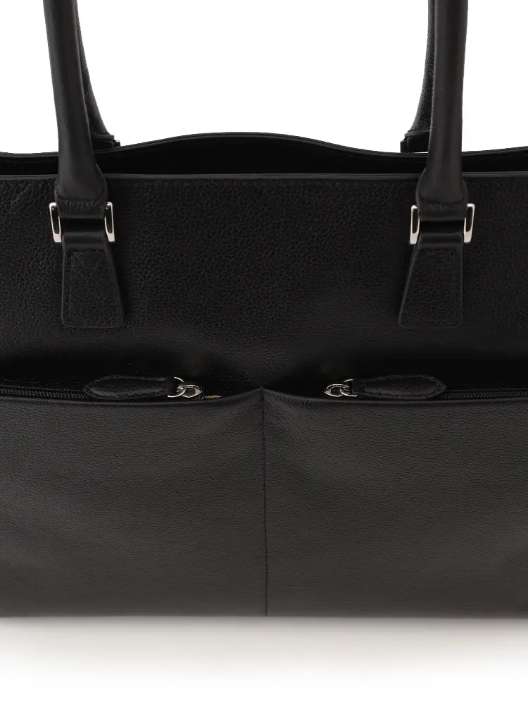 シボ感のある上質な牛革を100%使用した、汎用性の高いブラックトート。