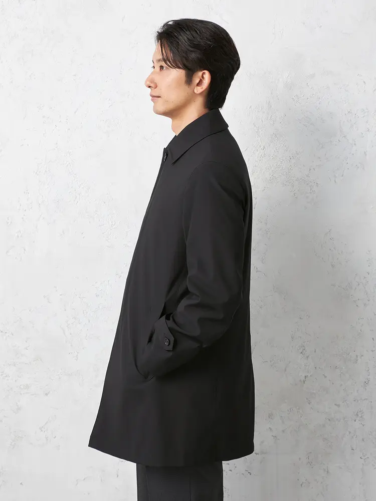 【パッカブル】コートロング軽量撥水ストレッチ無地nero秋冬【スリムデザイン】