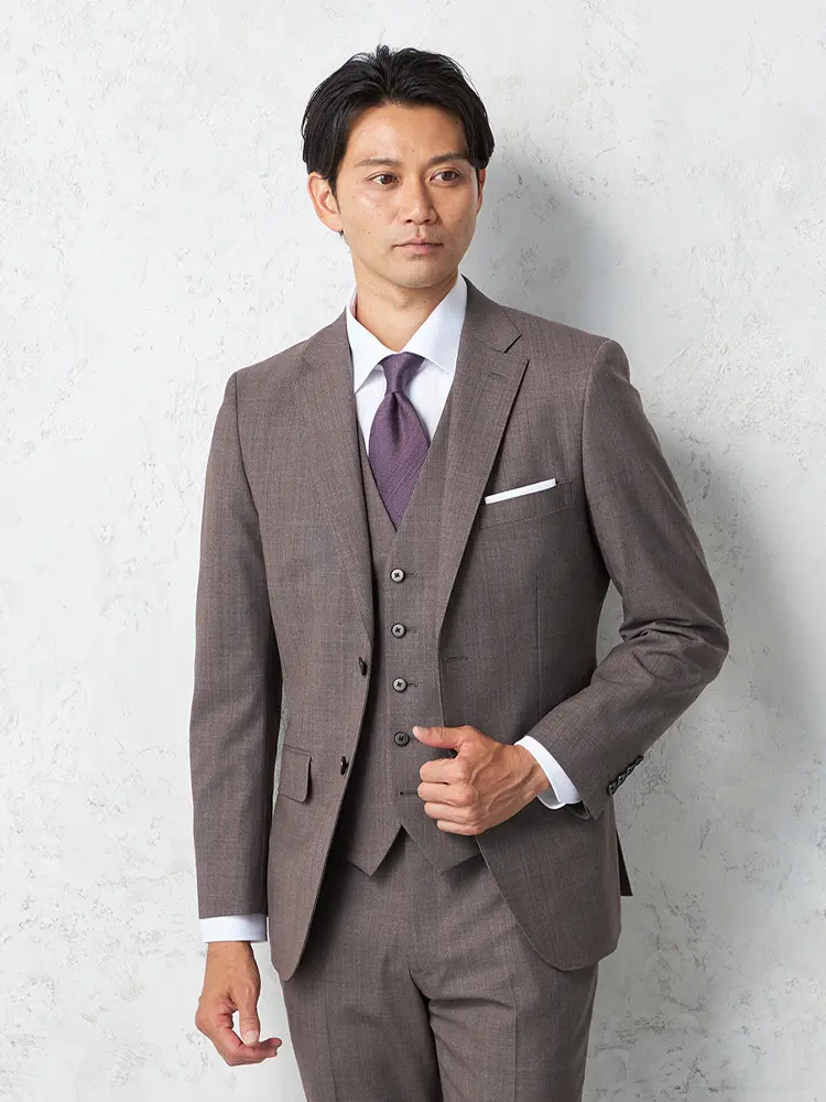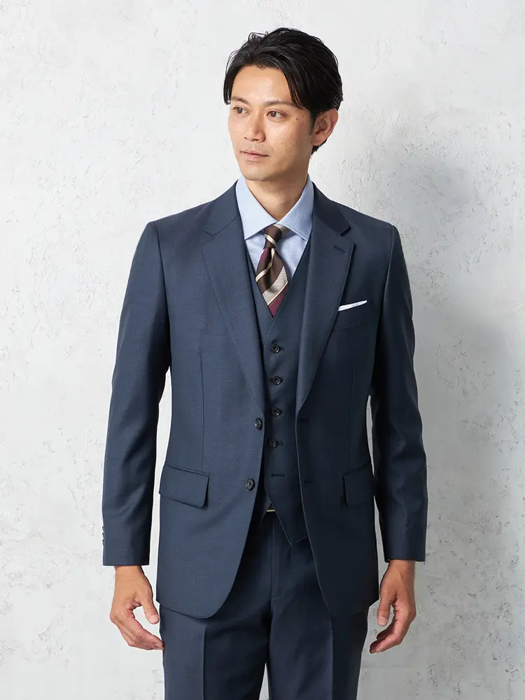 【ウール100%】スリーピーススーツ2つボタン【REDA社製生地】無地リッケンバッカー