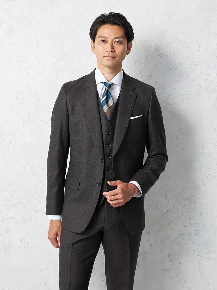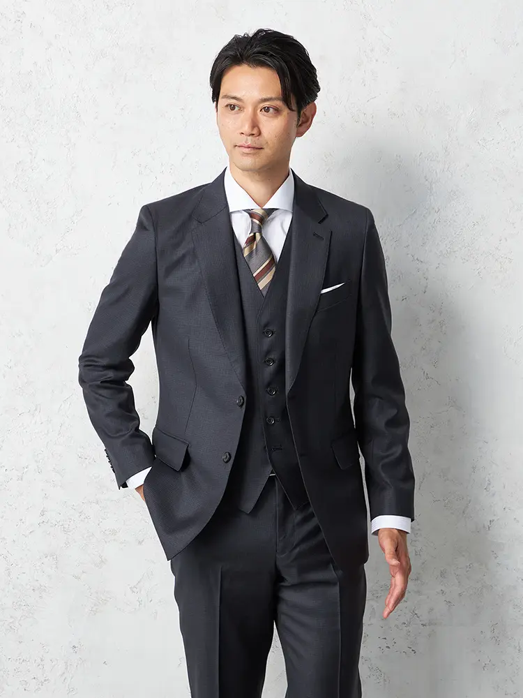 【ウール100%】スリーピーススーツ2つボタン【REDA社製生地】ピンヘッドリッケンバッカー