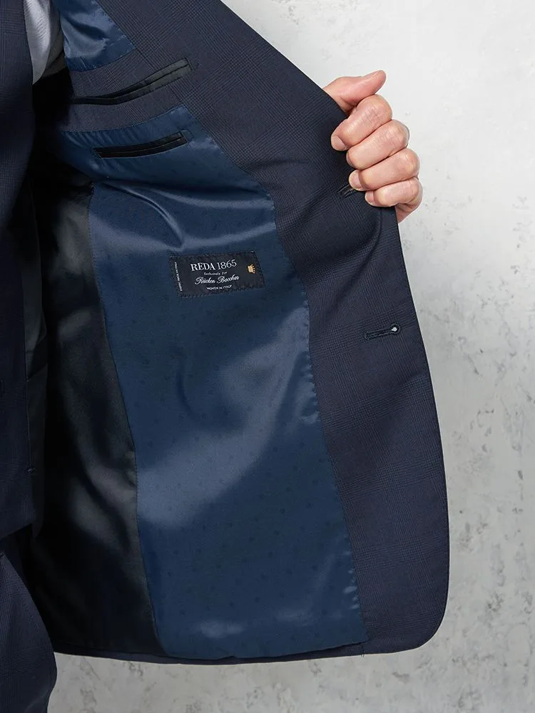 【ウール100%】スリーピーススーツ 2つボタン 【REDA社製生地】 チェック リッケンバッカー(ネイビー)