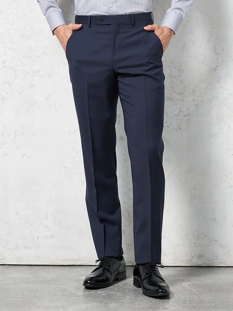 【パンツウォッシャブル】スリーピーススーツ 2つボタン 背抜き ノータック ネイビー チェック S&M BLUE LABEL