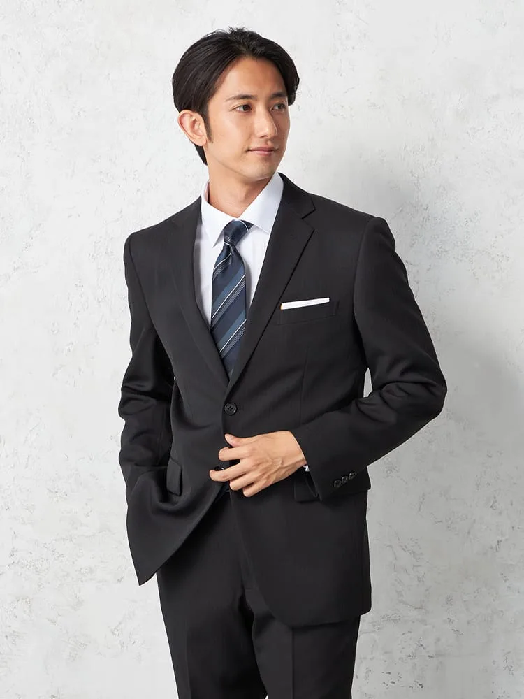 【即納】スーツ 2つボタン【WEB限定】上下ウォッシャブル ブラック ストライプ