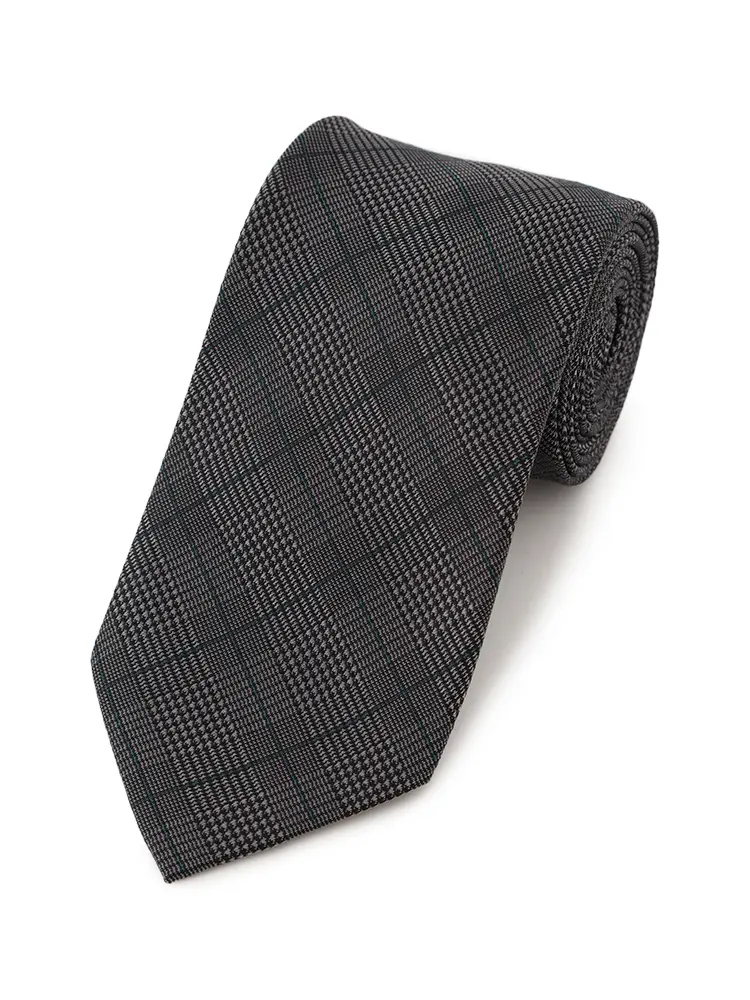 格子模様を基調とした、細やかな総柄のネクタイです。