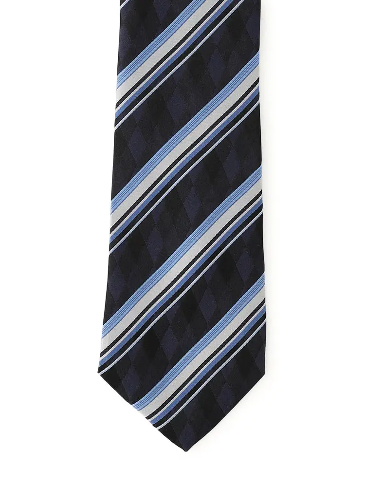 【カンサイヤマモトオム】シルクネクタイ ストライプ 秋冬(ネイビー)