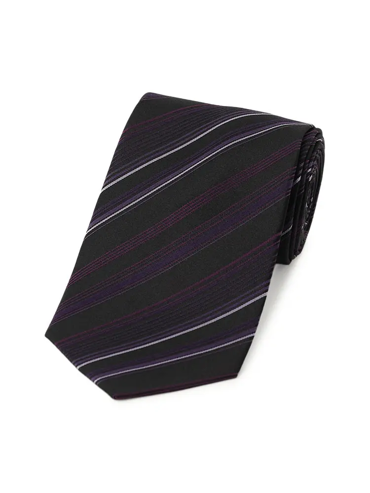 【リスペクトネロ】シルクネクタイ ストライプ 7.5cm巾 秋冬(パープル)