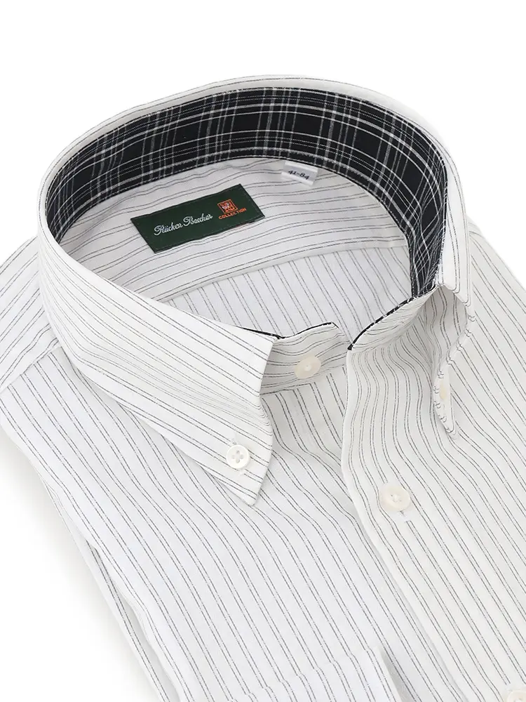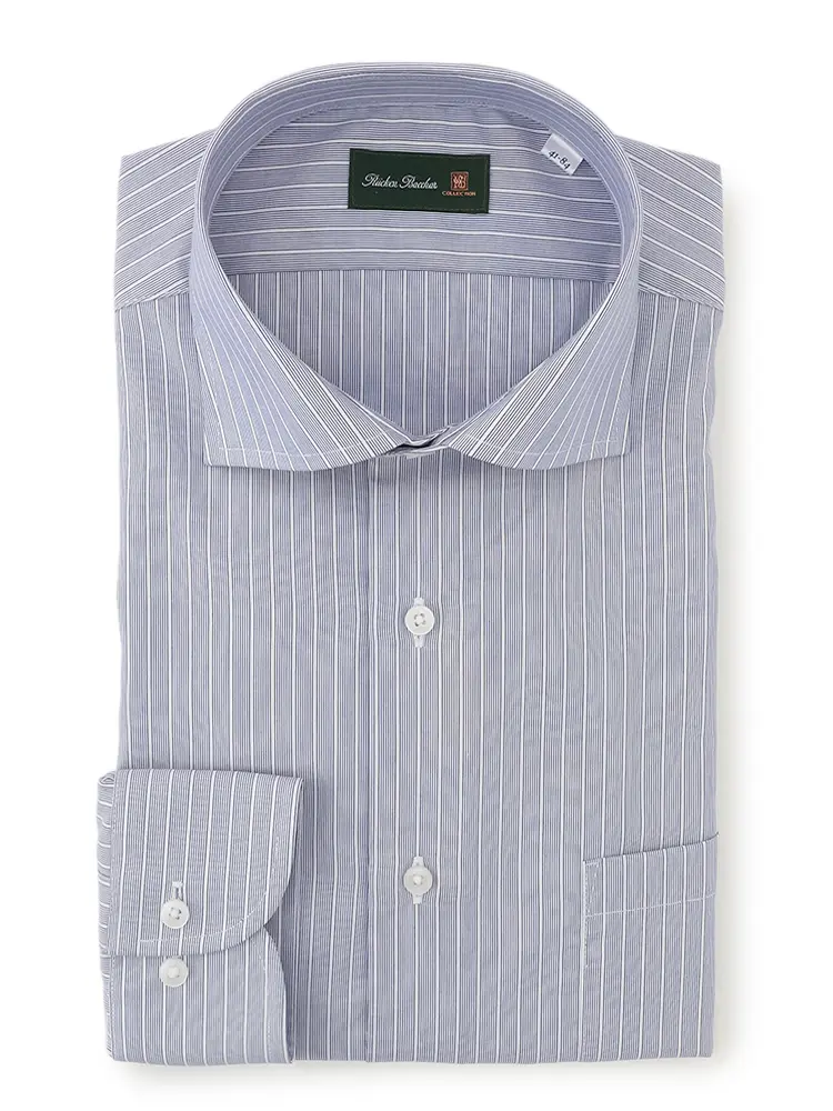 【形態安定】長袖ワイシャツボタンダウン【コットンプレミアムケア】ストライプリッケンバッカー通年