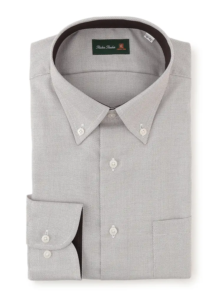 【形態安定】長袖 ワイシャツ ボタンダウン 小林製薬コラボ 抗菌防臭 消臭加工 織柄無地 リッケンバッカー 通年