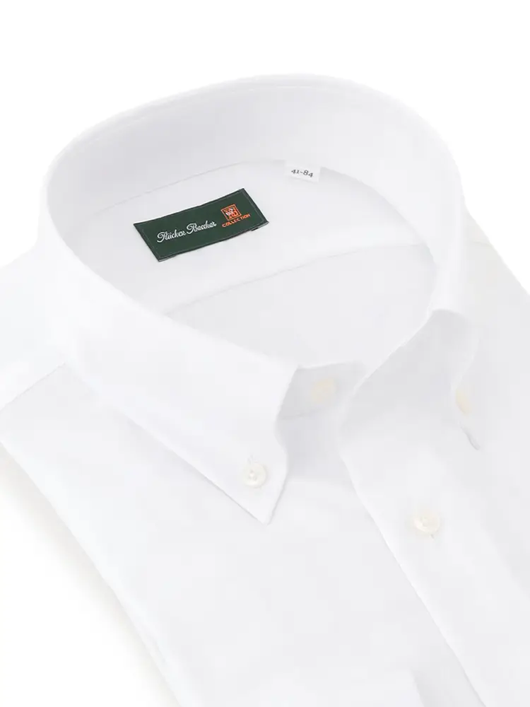 ドビーストライプの織り柄を清潔感あふれるホワイトカラーで仕上げたボタンダウンシャツです。
