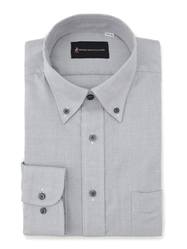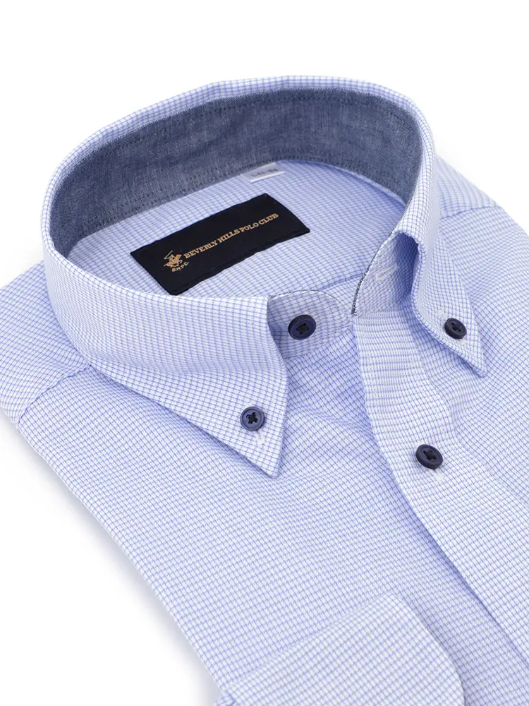 【ビバリーヒルズポロクラブ】 サックスチェック 長袖Yシャツ ボタンダウン マイクロチェック 形態安定 通年