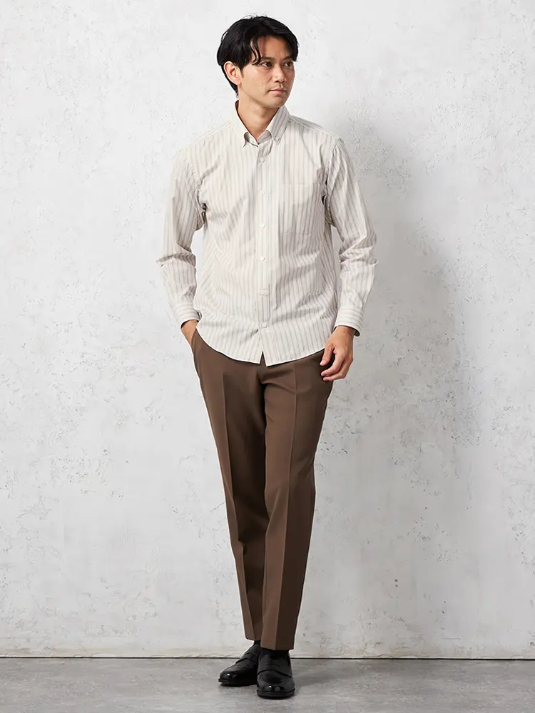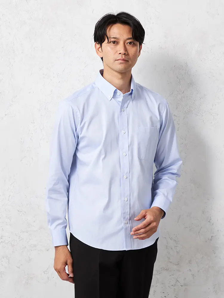 ノーネクタイでも襟立ちの良く着られる長袖ボタンダウンシャツです。