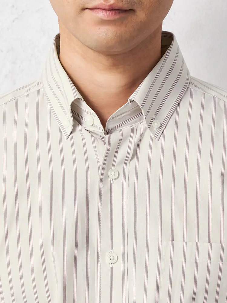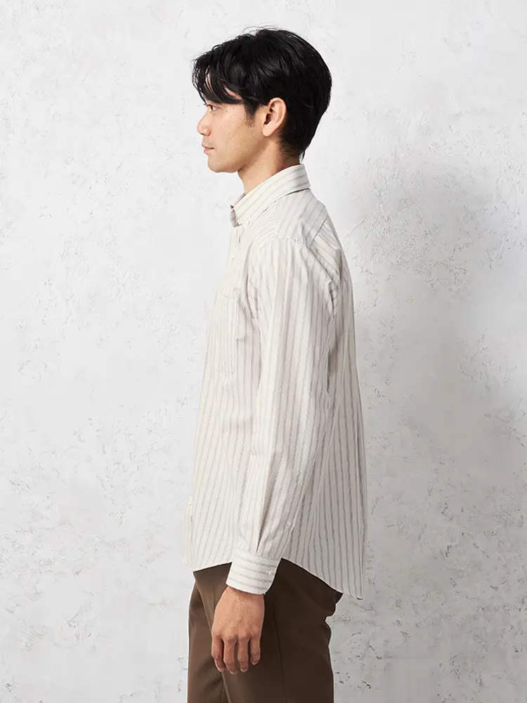 【形態安定】長袖ワイシャツボタンダウン【コットンプレミアムケア】ストライプリッケンバッカー通年