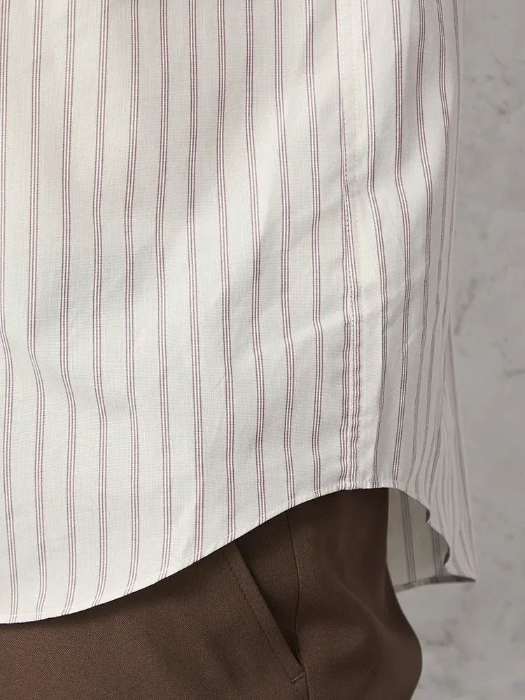 無地にはないおしゃれな雰囲気ただようストライプ柄の綿100% ビジカジシャツは、遠目にも存在感を発揮します。