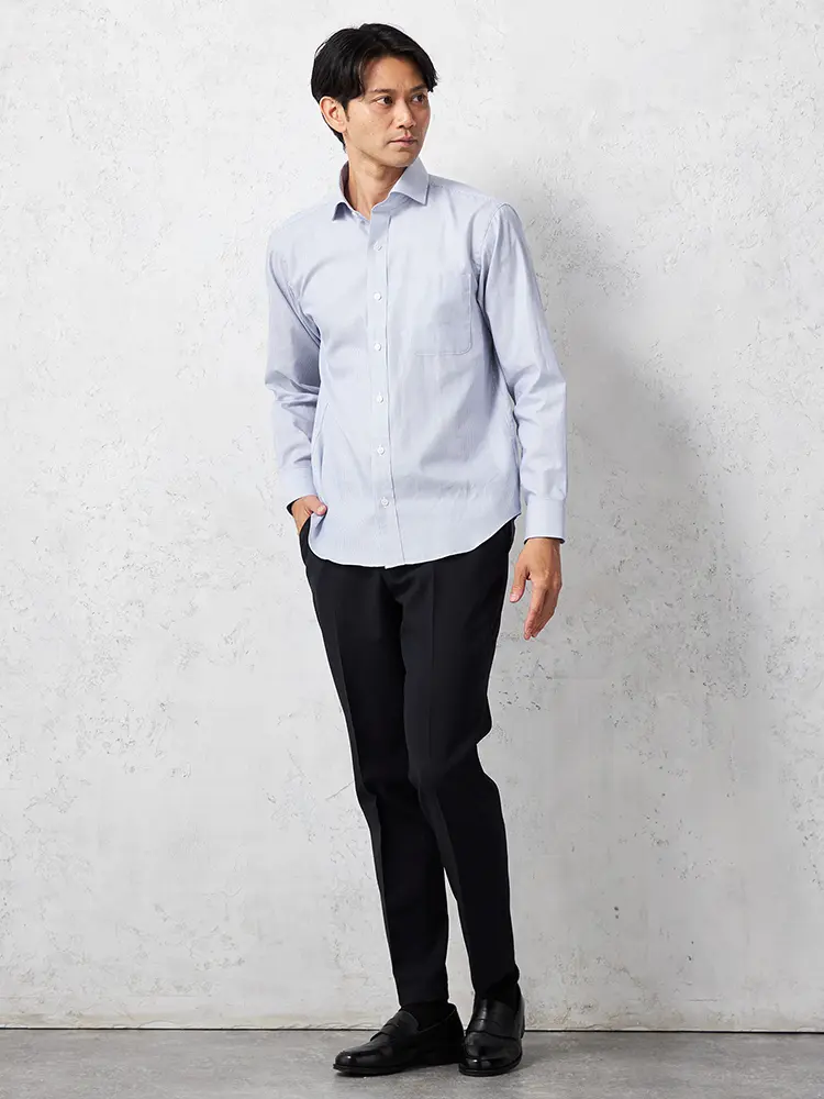 形態安定機能が施されており、洗濯後もシワになりにくく、常にきれいなシルエットを保てます。