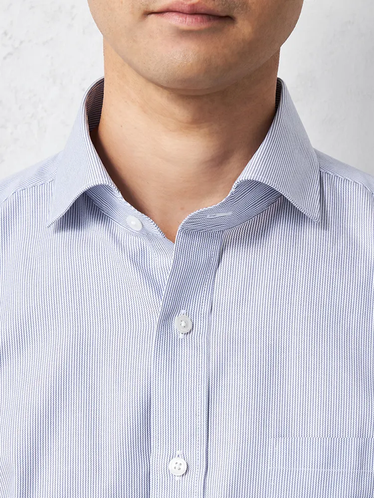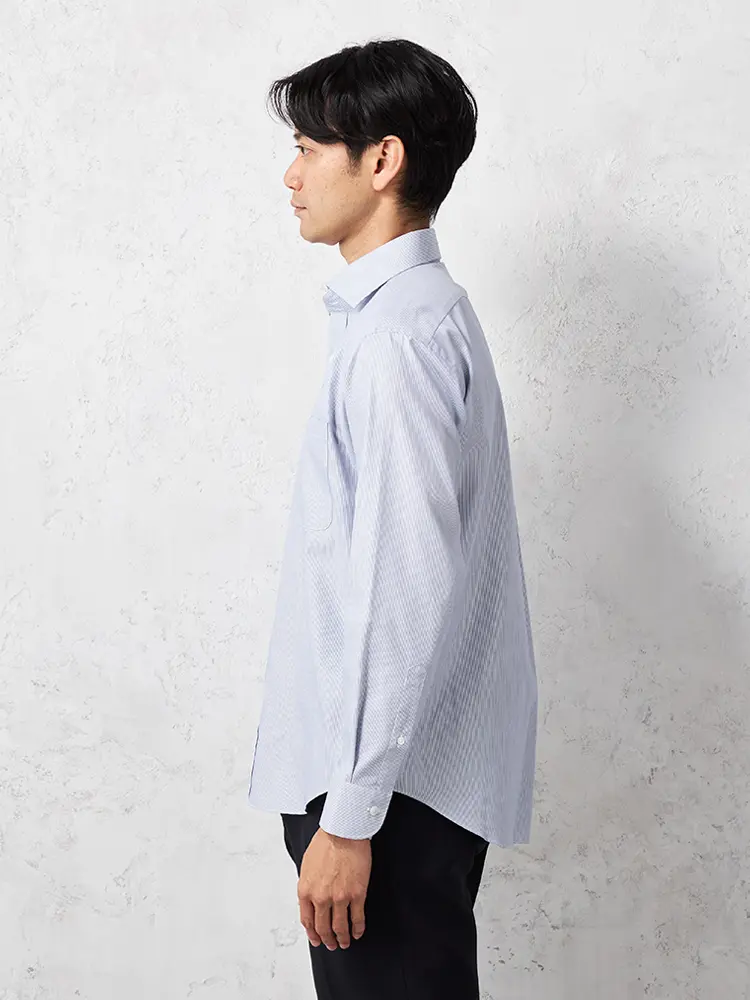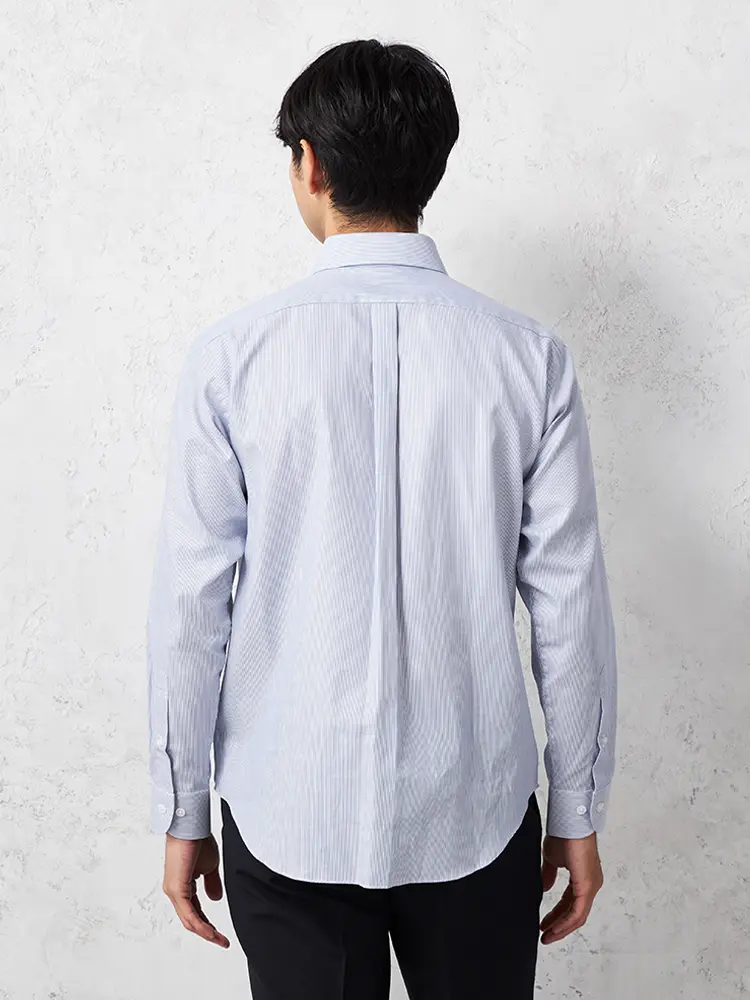 【形態安定】長袖ワイシャツボタンダウン【コットンプレミアムケア】ストライプリッケンバッカー通年