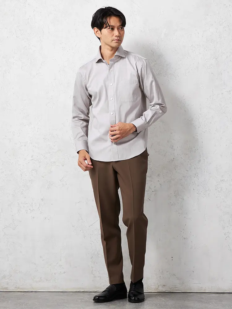 形態安定機能が施されており、洗濯後もシワになりにくく、常にきれいなシルエットを保てます。