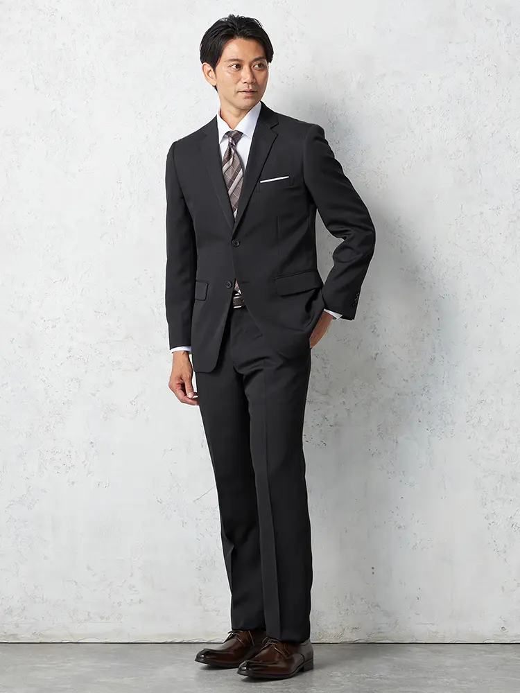 【上下ウォッシャブル】スーツ2つボタンツーパンツイージーケアブラックストライプフュージョンクラブ