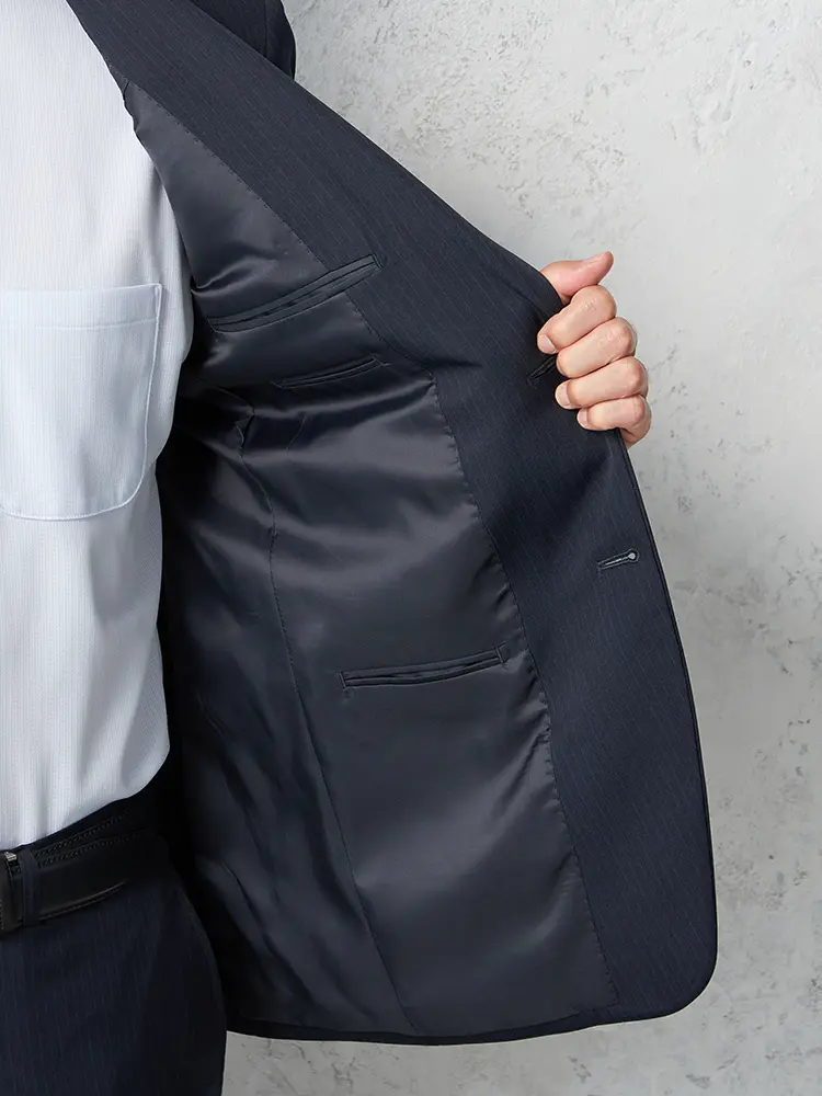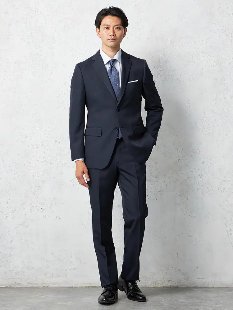 【上下ウォッシャブル】スーツ2つボタンイージーケアネイビーストライプフュージョンクラブ