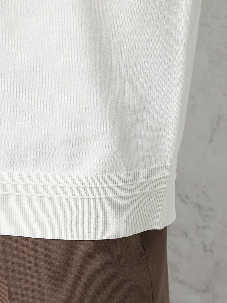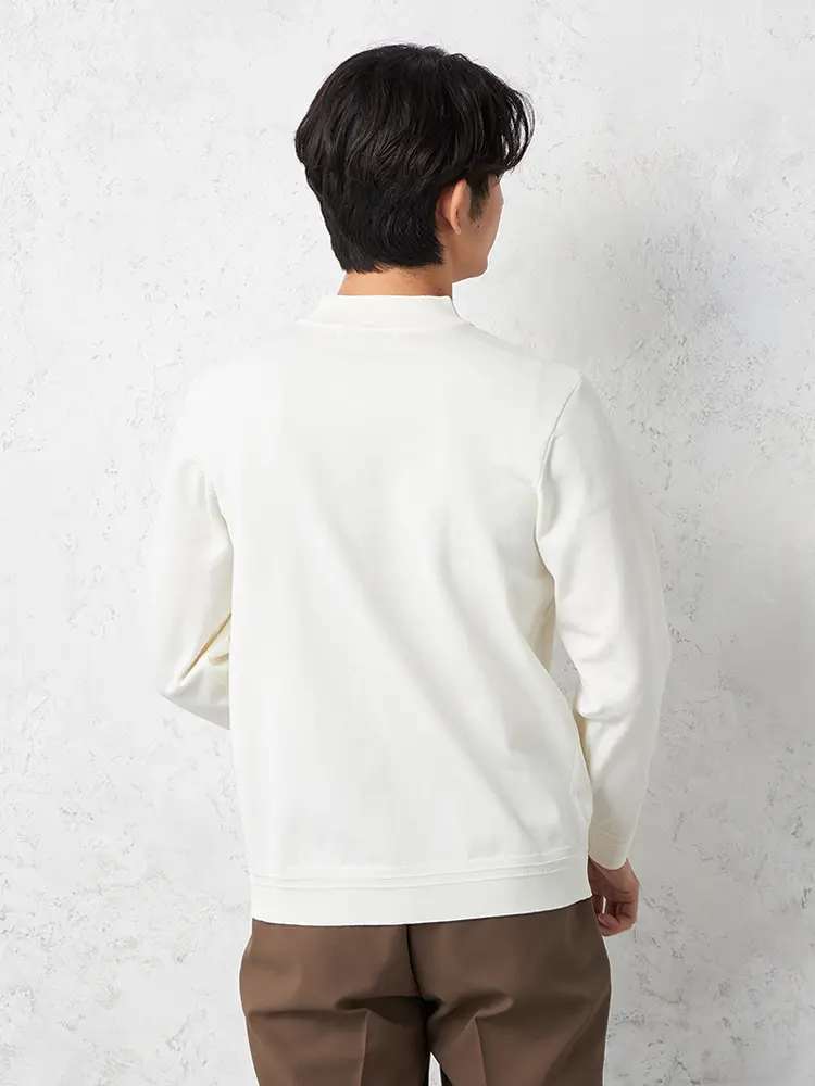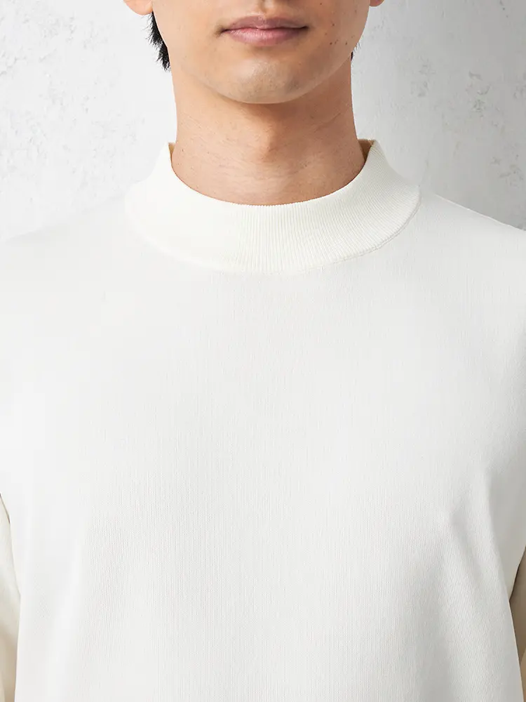 【TOKYO RUN】 14G天竺 モックネックニット カジュアルインナー 長袖 ウォッシャブル 抗ピリング 吸汗速乾 秋冬(ホワイト)