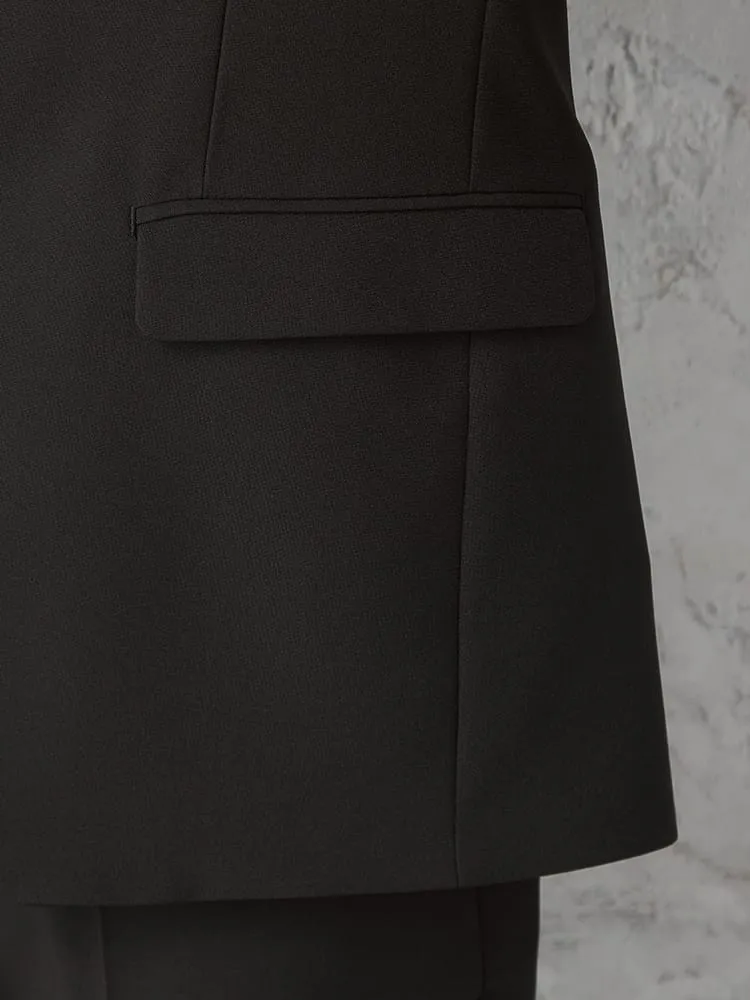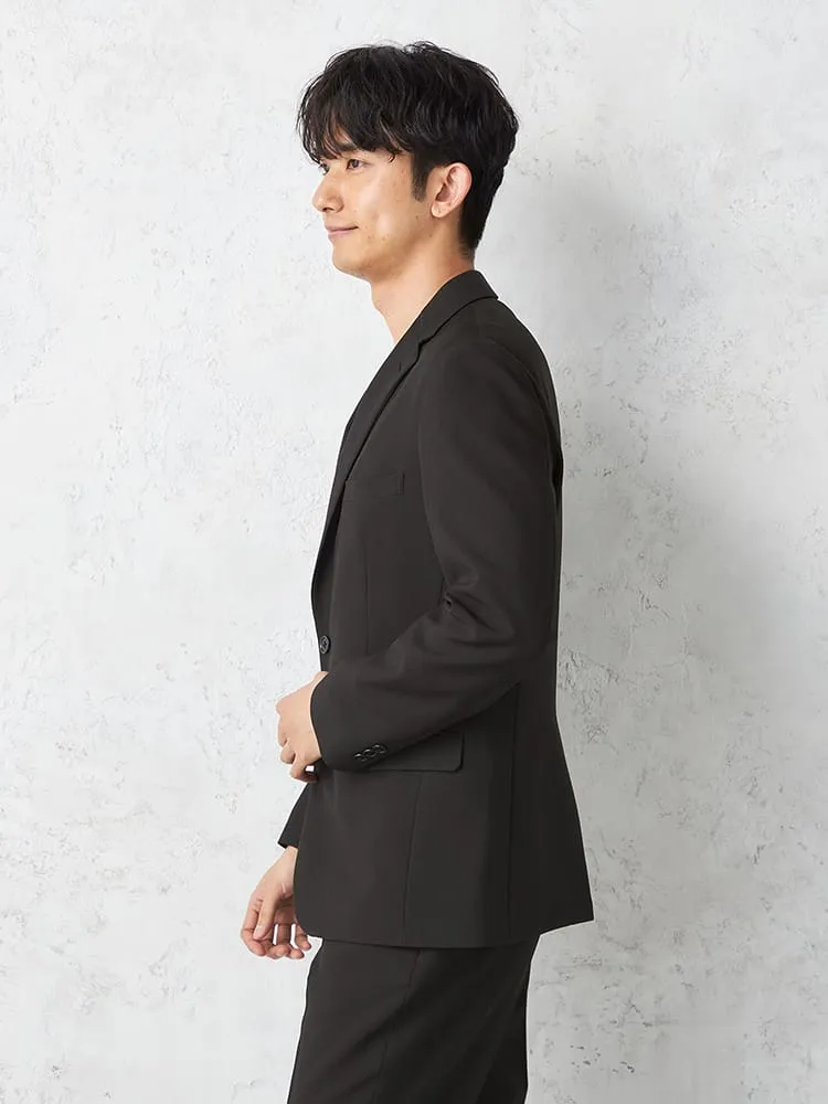 切り込みが1本のセンターベントデザインです。細身でスッキリとしたシルエットが特徴で、快適な着心地を提供します