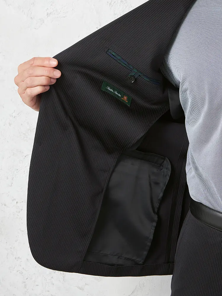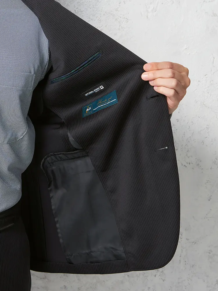 【上下ウォッシャブル】スーツ2つボタンイージーケアネイビーストライプフュージョンクラブ