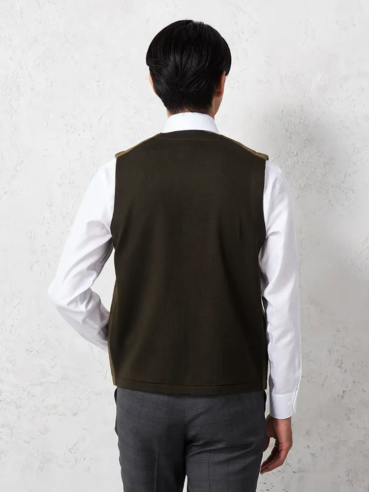 【ウォッシャブル】ヘリンボーン柄ニットジレ放電抗ピリングヘリンボンベストリッケンバッカー秋冬