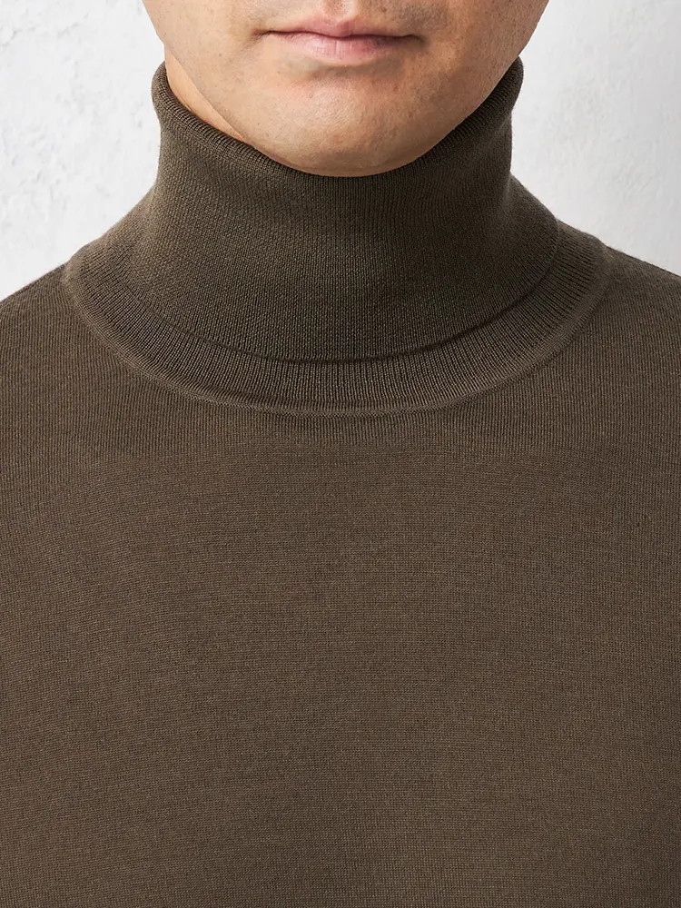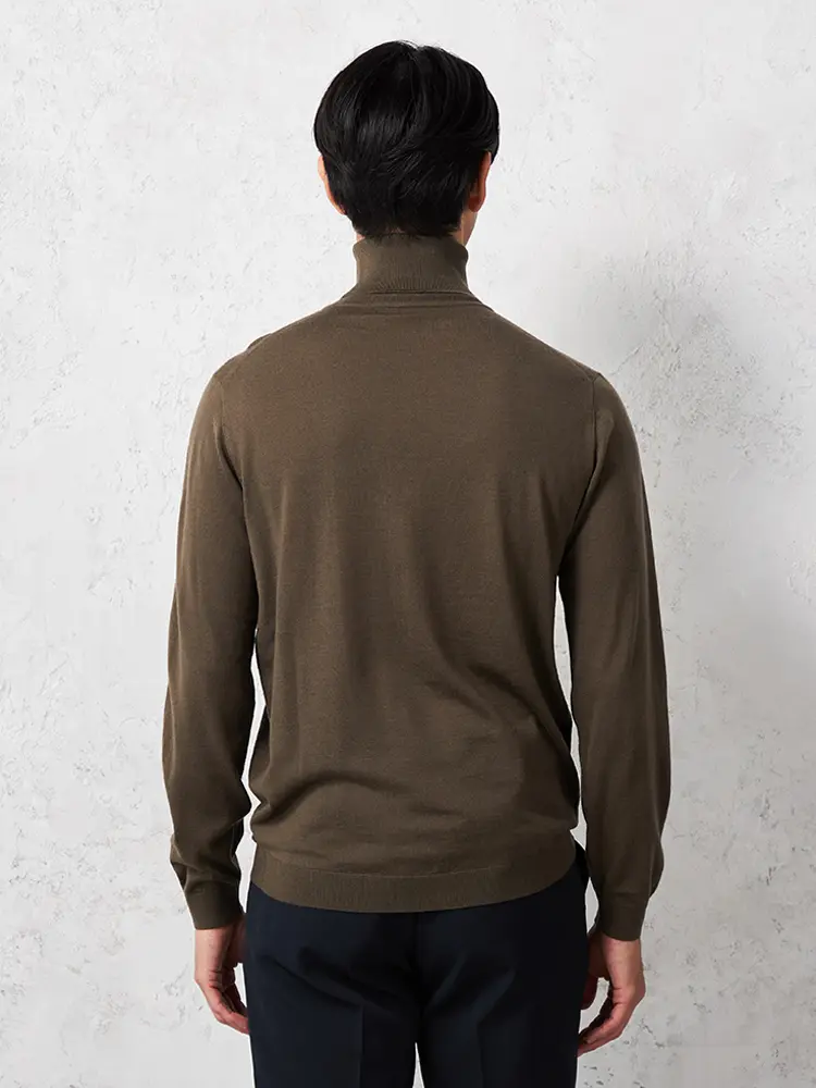 【リッケンバッカーブラック】 梳毛タートルネックセーター カジュアルインナー ニット 長袖 保温 秋冬(カーキー)